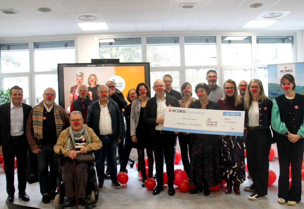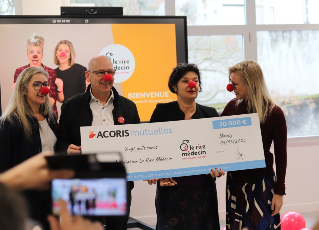 Le 3 décembre 2025, ACORIS Mutuelles a eu le plaisir de remettre un chèque de 20 000 € à l’association Le Rire Médecin, partenaire depuis de nombreuses années.